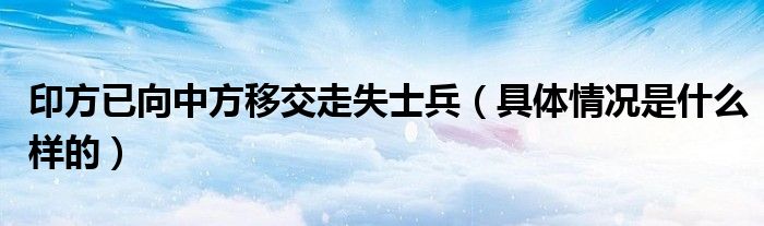 大家好,綜合小編來為大家講解下。印方已向中方移交走失士兵,具體情況是什么樣的很多人還不知道,現(xiàn)在讓我們一起來看看吧!