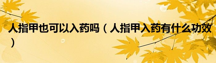 大家好,綜合小編來為大家講解下。人指甲也可以入藥嗎,人指甲入藥有什么功效很多人還不知道,現(xiàn)在讓我們一起來看看吧!