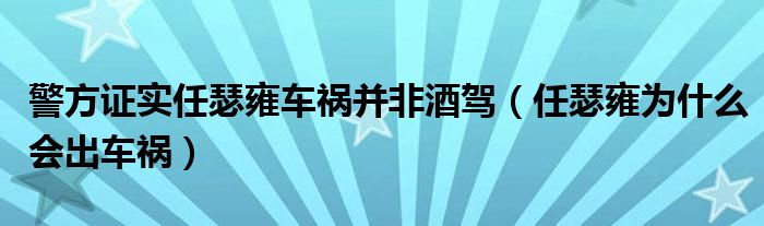 大家好,綜合小編來為大家講解下。警方證實任瑟雍車禍并非酒駕,任瑟雍為什么會出車禍很多人還不知道,現(xiàn)在讓我們一起來看看吧!