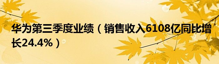 大家好,綜合小編來為大家講解下。華為第三季度業績,銷售收入6108億同比增長24.4%很多人還不知道,現在讓我們一起來看看吧!
