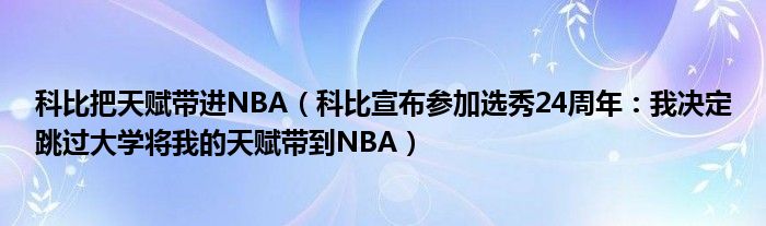 大家好,綜合小編來為大家講解下。科比把天賦帶進NBA,科比宣布參加選秀24周年:我決定跳過大學將我的天賦帶到NBA很多人還不知道,現在讓我們一起來看看吧!
