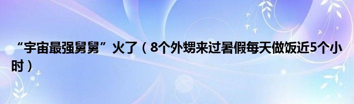 大家好,綜合小編來為大家講解下。“宇宙最強舅舅”火了,8個外甥來過暑假每天做飯近5個小時很多人還不知道,現在讓我們一起來看看吧!