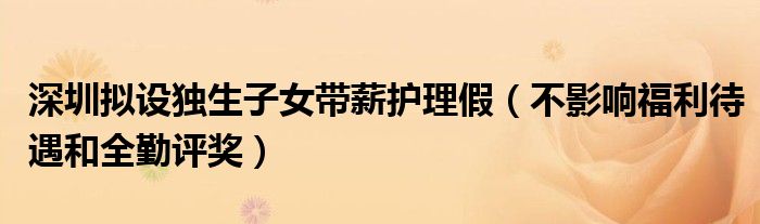 大家好,綜合小編來為大家講解下。深圳擬設(shè)獨生子女帶薪護理假,不影響福利待遇和全勤評獎很多人還不知道,現(xiàn)在讓我們一起來看看吧!