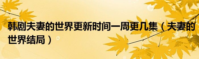 大家好,綜合小編來為大家講解下。韓劇夫妻的世界更新時間一周更幾集,夫妻的世界結局很多人還不知道,現在讓我們一起來看看吧!