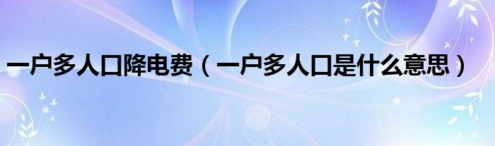 大家好,綜合小編來為大家講解下。一戶多人口降電費,一戶多人口是什么意思很多人還不知道,現在讓我們一起來看看吧!