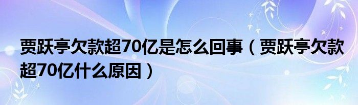 大家好,綜合小編來為大家講解下。賈躍亭欠款超70億是怎么回事,賈躍亭欠款超70億什么原因很多人還不知道,現(xiàn)在讓我們一起來看看吧!