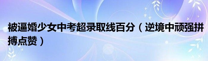 大家好,綜合小編來為大家講解下。被逼婚少女中考超錄取線百分,逆境中頑強拼搏點贊很多人還不知道,現在讓我們一起來看看吧!
