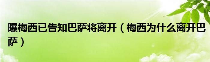 大家好,綜合小編來為大家講解下。曝梅西已告知巴薩將離開,梅西為什么離開巴薩很多人還不知道,現在讓我們一起來看看吧!