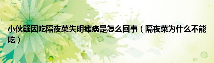 大家好,綜合小編來為大家講解下。小伙疑因吃隔夜菜失明癱瘓是怎么回事,隔夜菜為什么不能吃很多人還不知道,現在讓我們一起來看看吧!
