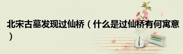 大家好,綜合小編來為大家講解下。北宋古墓發(fā)現(xiàn)過仙橋,什么是過仙橋有何寓意很多人還不知道,現(xiàn)在讓我們一起來看看吧!