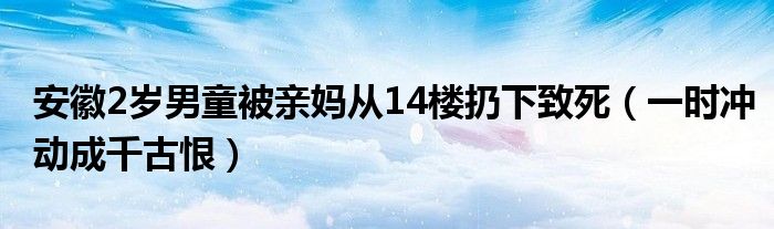 大家好,綜合小編來為大家講解下。安徽2歲男童被親媽從14樓扔下致死,一時沖動成千古恨很多人還不知道,現(xiàn)在讓我們一起來看看吧!