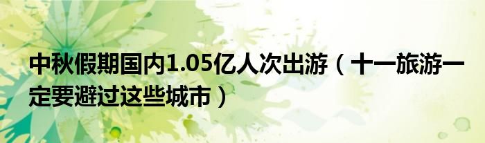 大家好,綜合小編來為大家講解下。中秋假期國內1.05億人次出游,十一旅游一定要避過這些城市很多人還不知道,現在讓我們一起來看看吧!