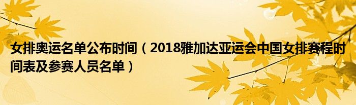 大家好,綜合小編來為大家講解下。女排奧運(yùn)名單公布時間,2018雅加達(dá)亞運(yùn)會中國女排賽程時間表及參賽人員名單很多人還不知道,現(xiàn)在讓我們一起來看看吧!