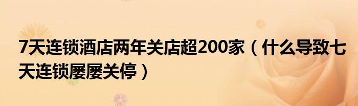 大家好,綜合小編來為大家講解下。7天連鎖酒店兩年關店超200家,什么導致七天連鎖屢屢關停很多人還不知道,現在讓我們一起來看看吧!