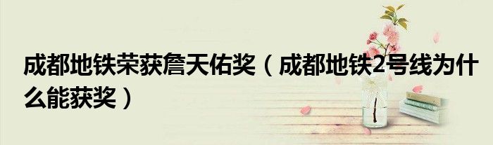 大家好,綜合小編來為大家講解下。成都地鐵榮獲詹天佑獎,成都地鐵2號線為什么能獲獎很多人還不知道,現在讓我們一起來看看吧!