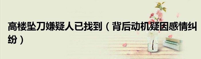 大家好,綜合小編來(lái)為大家講解下。高樓墜刀嫌疑人已找到,背后動(dòng)機(jī)疑因感情糾紛很多人還不知道,現(xiàn)在讓我們一起來(lái)看看吧!
