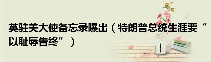 大家好,綜合小編來為大家講解下。英駐美大使備忘錄曝出,特朗普總統(tǒng)生涯要“以恥辱告終”很多人還不知道,現(xiàn)在讓我們一起來看看吧!