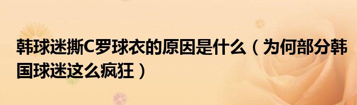 大家好,綜合小編來為大家講解下。韓球迷撕C羅球衣的原因是什么,為何部分韓國球迷這么瘋狂很多人還不知道,現在讓我們一起來看看吧!