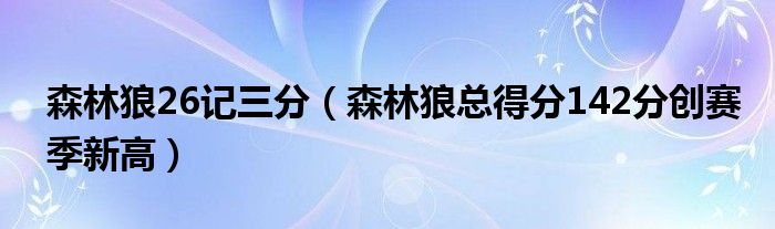 大家好,綜合小編來為大家講解下。森林狼26記三分,森林狼總得分142分創賽季新高很多人還不知道,現在讓我們一起來看看吧!