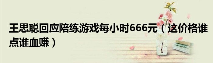 大家好,綜合小編來為大家講解下。王思聰回應(yīng)陪練游戲每小時666元,這價格誰點誰血賺很多人還不知道,現(xiàn)在讓我們一起來看看吧!