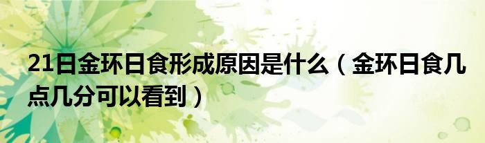 大家好,綜合小編來為大家講解下。21日金環日食形成原因是什么,金環日食幾點幾分可以看到很多人還不知道,現在讓我們一起來看看吧!