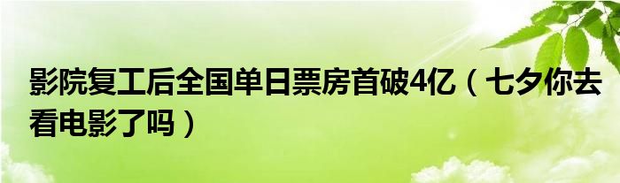 大家好,綜合小編來為大家講解下。影院復工后全國單日票房首破4億,七夕你去看電影了嗎很多人還不知道,現在讓我們一起來看看吧!