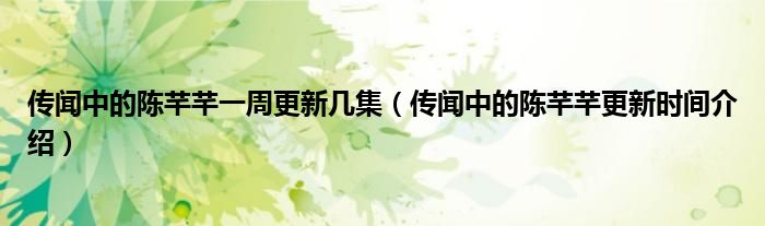 大家好,綜合小編來為大家講解下。傳聞中的陳芊芊一周更新幾集,傳聞中的陳芊芊更新時間介紹很多人還不知道,現在讓我們一起來看看吧!