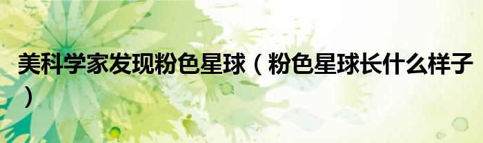 大家好,綜合小編來為大家講解下。美科學家發現粉色星球,粉色星球長什么樣子很多人還不知道,現在讓我們一起來看看吧!