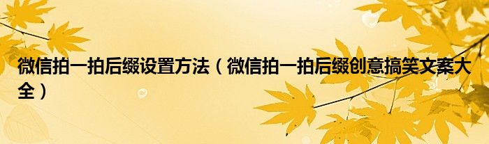 大家好,綜合小編來(lái)為大家講解下。微信拍一拍后綴設(shè)置方法,微信拍一拍后綴創(chuàng)意搞笑文案大全很多人還不知道,現(xiàn)在讓我們一起來(lái)看看吧!