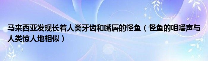 大家好,綜合小編來為大家講解下。馬來西亞發(fā)現(xiàn)長(zhǎng)著人類牙齒和嘴唇的怪魚,怪魚的咀嚼聲與人類驚人地相似很多人還不知道,現(xiàn)在讓我們一起來看看吧!