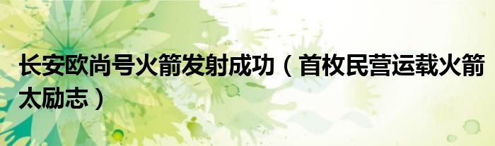 大家好,綜合小編來為大家講解下。長安歐尚號火箭發射成功,首枚民營運載火箭太勵志很多人還不知道,現在讓我們一起來看看吧!
