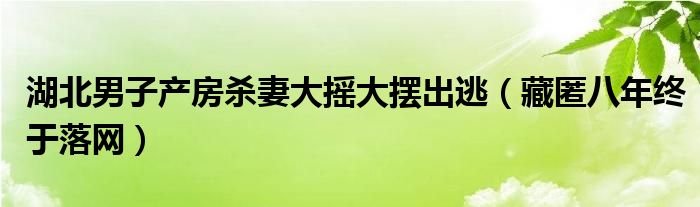 大家好,綜合小編來為大家講解下。湖北男子產房殺妻大搖大擺出逃,藏匿八年終于落網很多人還不知道,現在讓我們一起來看看吧!