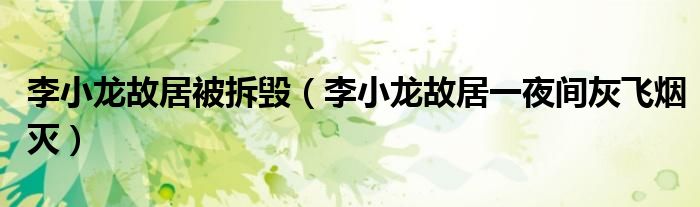 大家好,綜合小編來為大家講解下。李小龍故居被拆毀,李小龍故居一夜間灰飛煙滅很多人還不知道,現在讓我們一起來看看吧!