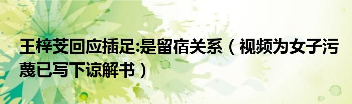 大家好,綜合小編來為大家講解下。王梓芠回應(yīng)插足:是留宿關(guān)系,視頻為女子污蔑已寫下諒解書很多人還不知道,現(xiàn)在讓我們一起來看看吧!