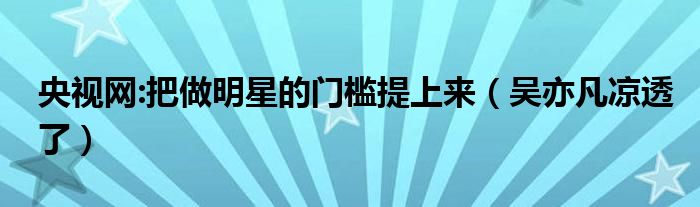 大家好,綜合小編來為大家講解下。央視網:把做明星的門檻提上來,吳亦凡涼透了很多人還不知道,現在讓我們一起來看看吧!