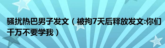 大家好,綜合小編來為大家講解下。騷擾熱巴男子發文,被拘7天后釋放發文:你們千萬不要學我很多人還不知道,現在讓我們一起來看看吧!