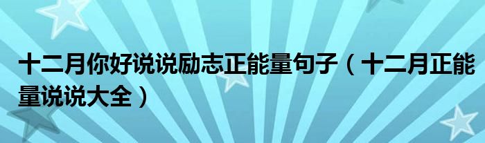 大家好,綜合小編來為大家講解下。十二月你好說說勵志正能量句子,十二月正能量說說大全很多人還不知道,現在讓我們一起來看看吧!