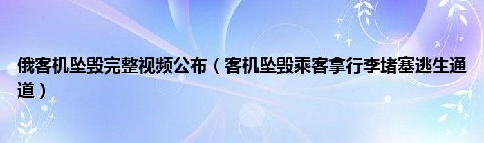 大家好,綜合小編來為大家講解下。俄客機墜毀完整視頻公布,客機墜毀乘客拿行李堵塞逃生通道很多人還不知道,現在讓我們一起來看看吧!