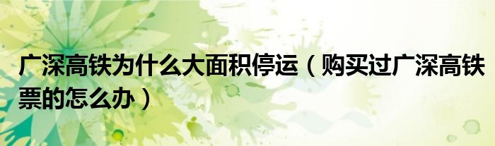 大家好,綜合小編來為大家講解下。廣深高鐵為什么大面積停運,購買過廣深高鐵票的怎么辦很多人還不知道,現在讓我們一起來看看吧!