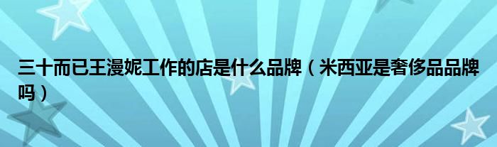 大家好,綜合小編來為大家講解下。三十而已王漫妮工作的店是什么品牌,米西亞是奢侈品品牌嗎很多人還不知道,現在讓我們一起來看看吧!