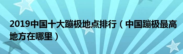 大家好,綜合小編來為大家講解下。2019中國十大蹦極地點排行,中國蹦極最高地方在哪里很多人還不知道,現在讓我們一起來看看吧!