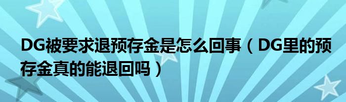大家好,綜合小編來為大家講解下。DG被要求退預存金是怎么回事,DG里的預存金真的能退回嗎很多人還不知道,現在讓我們一起來看看吧!