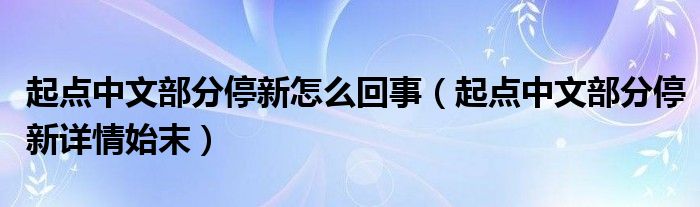 大家好,綜合小編來為大家講解下。起點中文部分停新怎么回事,起點中文部分停新詳情始末很多人還不知道,現在讓我們一起來看看吧!