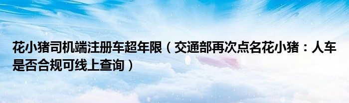 大家好,綜合小編來為大家講解下。花小豬司機端注冊車超年限,交通部再次點名花小豬:人車是否合規可線上查詢很多人還不知道,現在讓我們一起來看看吧!