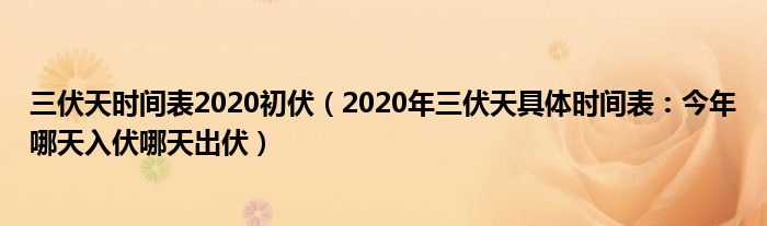大家好,綜合小編來為大家講解下。三伏天時(shí)間表2020初伏,2020年三伏天具體時(shí)間表:今年哪天入伏哪天出伏很多人還不知道,現(xiàn)在讓我們一起來看看吧!