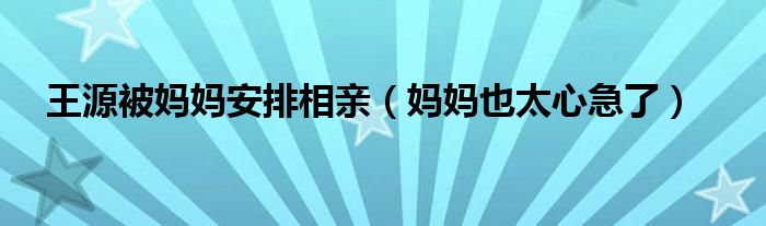大家好,綜合小編來為大家講解下。王源被媽媽安排相親,媽媽也太心急了很多人還不知道,現(xiàn)在讓我們一起來看看吧!