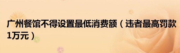 大家好,綜合小編來為大家講解下。廣州餐館不得設(shè)置最低消費(fèi)額,違者最高罰款1萬元很多人還不知道,現(xiàn)在讓我們一起來看看吧!