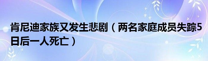 大家好,綜合小編來為大家講解下。肯尼迪家族又發(fā)生悲劇,兩名家庭成員失蹤5日后一人死亡很多人還不知道,現(xiàn)在讓我們一起來看看吧!