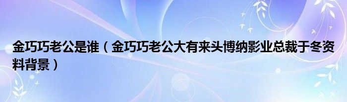 大家好,綜合小編來為大家講解下。金巧巧老公是誰,金巧巧老公大有來頭博納影業總裁于冬資料背景很多人還不知道,現在讓我們一起來看看吧!