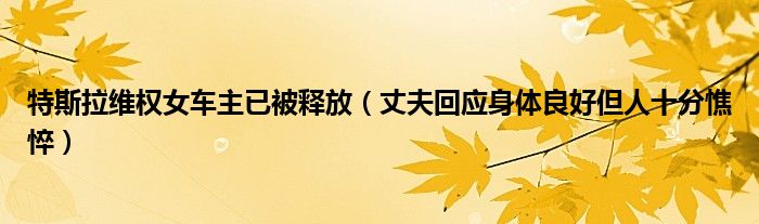 大家好,綜合小編來為大家講解下。特斯拉維權(quán)女車主已被釋放,丈夫回應(yīng)身體良好但人十分憔悴很多人還不知道,現(xiàn)在讓我們一起來看看吧!